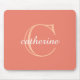 Classic Peach Pink Script Monogram Mouse Pad