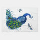 Original drawing by Sandra Gale of a realistically beautiful and colourful peacock with two whimsical dragonflies around it. This classic and decorative design looks great on home decor and apparel as well as eye catching stationary or phone cases. A bright and colourful artwork that is perfect for gifts, party supplies and Spring home decor products.