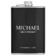 featuring personalised groomsman's name, title and wedding date in white classic serif font style on black background.