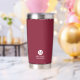 This stylish gift features a burgundy red background with an initial inside a white circle. The name and title are written in a classic white serif font.
