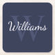 Classic Personalised Monogram and Name Navy Blue Square Paper Coaster