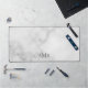 Classic design features personalised 3 letter initial monogram in grey classic serif font style on white marble background.