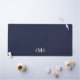 Classic design features personalised 3 letter initial monogram in white classic serif font style on navy blue background.