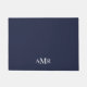 Classic design features personalised 3 letter initial monogram in white classic serif font style on navy blue background.