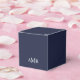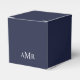 Classic design features personalised 3 letter initial monogram in white classic serif font style on navy blue background.