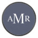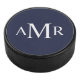 Classic design features personalised 3 letter initial monogram in white classic serif font style on navy blue background.