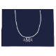 Classic design features personalised 3 letter initial monogram in white classic serif font style on navy blue background.