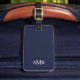 Classic design features personalised 3 letter initial monogram in white classic serif font style on navy blue background.