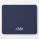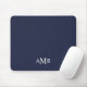 Classic design features personalised 3 letter initial monogram in white classic serif font style on navy blue background.