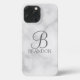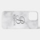 features personalised monogram in grey classic script font style and name in grey classic serif font style on white marble background.