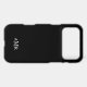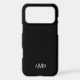 Classic design features personalized 3 letter initial monogram in white classic serif font style on black background.