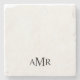 Classic design features personalized 3 letter initial monogram in black classic serif font style on white marble background.