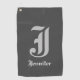 This vintage golf towel design features a customizable name and initial letter. A golf towel like this might be a fun personalized gift for somebody who likes to play golf. [~Z0000440]