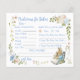 This classic Peter the Rabbit theme is a wonderful choice for your baby shower. This Predictions for Baby game/ advice card for the parents to be has the whimsical watercolor art of the Tale of Peter the Rabbit, including Mother Rabbit and her twins. The game/ advice appears on each side of the card so advice can be individualised for each twin. This game is fun during your shower and becomes a wonderful keepsake afterwards. See the rest of the Classic Peter the Rabbit Twins Baby Shower Collection in my store under collections.