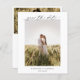 Classic style budget wedding save the date with a simple and minimal black and white design with a combination of traditional serif fonts and an elegant script along with your date in a large format for a modern touch along with your favourite photo. The back has a second photo for a total of two pictures. This elegant save the date is great for a formal wedding.