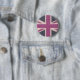 a button / badge with a classic pink british flag design