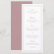 Classic style dusty rose pink wedding menu featuring a simple and minimal design with your monogram, names and wedding date at the top along with your menu surrounded by a double border. The fonts alternate between and elegant script, a traditional serif and minimalist sans serif fonts. This menu is great for a formal wedding.