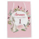 Beautiful and delicate pink Cottontail Bunny from the beloved classic "The Tale of Peter the Rabbit" by Beatrix Potter. The age can be changed to your birthday girl's age. This gift bag features a pink and green floral wreath. Personalise this gift bag easily by filling in the fields. Please see the "Floral Pink Peter the Rabbit Cute Bunny Birthday Collection" in my store for matching items for the party.