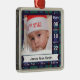 This classic tartan plaid baby’s first Christmas ornament design features a customisable photo and allows you to display your baby’s name, date of birth, and birth stats (birth weight, birth length, and birth time).