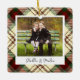 A sweet double sided photo ornament displaying a favorite photo on each side, on a festive red and green plaid background. Personalize with a custom caption on the front in handwritten lettering, and add the year to the back.