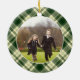 Personalise this festive custom Christmas ornament with a favourite family photo on each side, framed by a green plaid border.