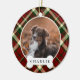 Give your furry friend a special place on the tree this Christmas with our classic plaid pet photo ornament. Design features your favourite dog photo with your pet's name on a dog bone illustration, on a red and green holiday plaid background.