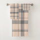 A favourite classic black striped plaid with tan. Great for home baths, shower gifts, cottages and more. We have a great selection of all styles, colours, unique bath towels (and sets including shower curtains and bath mats) at our store. Thanks for stopping by.