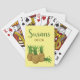 Yellow personalised playing cards with three pineapple design for a tropical theme.