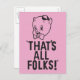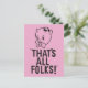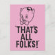 This classic line art of Porky Pig features his head above his iconic phrase "That's All Folks!". Click customise to change the background colour.