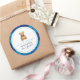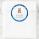 Classic Preppy Blue Plaid Teddy Bear Baby Shower Round Sticker