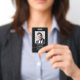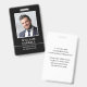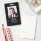 Create a professional look with this classic style ID badge. A simple design, combined with elegant and traditional typefaces, printed in black and white. Your custom photo, name, business and profession are on the front and your contact information is on the back. All the text can be customised or deleted so you can include the information you want.