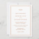 Classic style earth tone all in one wedding invitation in terracotta / rust / orange featuring a simple and minimal design with your monogram at the top and your event details surrounded by a double border. The fonts alternate between and elegant script, a traditional serif and minimalist sans serif fonts. The back has your guest details along with an optional QR Code (if you prefer, you may remove the QR Code in the design editing tool). This invitation is great for a formal wedding.