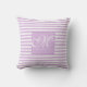 NewParkLane - Classic and chic personalised throw pillow, with a lavender and purple frame for your name and monogram in elegant script typography, against a purple and white striped background. Easy to customise in Zazzle with your own text for a personalised design. All text styles, colours & sizes can be modified to fit your needs.