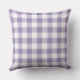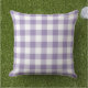 A classic purple and white gingham plaid outdoor pillow with a soft small-scale check pattern. The purple gingham brings a whimsical, unique accent to patio furniture, garden seating, or porch chairs. A distinctive pattern that stands out among traditional outdoor colour palettes.