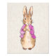 Classic bunny rabbit in a pink jacket with a beige linen fabric background.