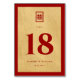 Red Two Lined Classic Rectangle Double Happiness On A Faux Matt Golden Foil Paper Background, Double Sided Chinese Wedding Table Number Card.