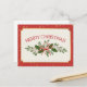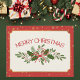 Send festive cheer with this elegant Merry Christmas postcard featuring traditional holly leaves, red berries, and a red bow framed in a gold border. The timeless red and green color palette with soft snowfall details evokes a cozy holiday spirit. Perfect for family greetings, office mailers, or festive thank-you notes. This classic Christmas design adds warmth and charm to every message you send.