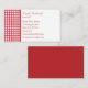 These business cards have a classic red and white gingham plaid patterned border and are ready to be customised with all of your information in coordinating red lettering.