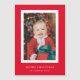 This holiday photo card exudes sophistication with its classic and traditional design. The rich, bright red background and crisp white border frame your cherished photo effortlessly, creating an upscale, luxe feel that's perfect for celebrating the holidays.