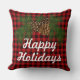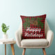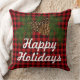 Happy holidays - rustic up north red and black plaid pattern with pine cone detail