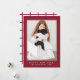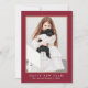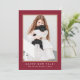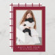 Simple and classic one photo red Happy New Year holiday card features a traditional red colour and minimal typography on the front, with a red and white plaid check pattern back.