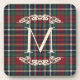 This elegant and contemporary beverage coaster features your family monogram and showcases a classic plaid pattern in shades of green, dark blue, and red. This design captures a classy and nostalgic English holiday ambiance. Making it ideal for decorating a classic colonial-style home, as well as a country cottage, log cabin, or vacation home by a lake or river.