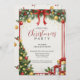 This classic Christmas invitation features festive red ribbons, gold ornaments, lush greenery, and a beautifully decorated Christmas tree. The warm, traditional color palette brings nostalgic holiday charm to any gathering. Ideal for timeless Christmas parties with a cheerful, vibrant seasonal style.