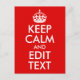 Create your own "KEEP CALM AND CARRY ON" typography style postcard with a classic red background and white text. If you transfer the text design to another product, set a background colour such as this red colour code DDOOOO.