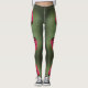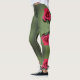 Classic Red Roses Elegant Floral Green Leggings