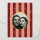 Send warm holiday wishes in timeless style with this elegant red striped photo card Featuring bold retro stripes, golden star details, and a charming ribbon-framed photo space, it’s the perfect way to share your love and joy with friends and family. Whether celebrating your first holiday together or sending annual greetings, this card adds a cosy, vintage charm to the season.