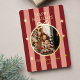 Send warm holiday wishes in timeless style with this elegant red striped photo card Featuring bold retro stripes, golden star details, and a charming ribbon-framed photo space, it’s the perfect way to share your love and joy with friends and family. Whether celebrating your first holiday together or sending annual greetings, this card adds a cosy, vintage charm to the season.