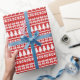 This classic red and white holiday wrapping paper features horizontal striped patterns of Christmas pine trees and snowflakes.