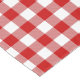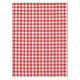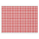 A classic red and white gingham pattern tablecloth.
