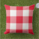 A classic red and white outdoor pillow with a large-scale gingham check pattern. The oversized red check brings a cheerful, all-American accent to patio furniture, porch seating, or picnic-styled outdoor spaces. A quintessential pattern for summer entertaining and patriotic decor.